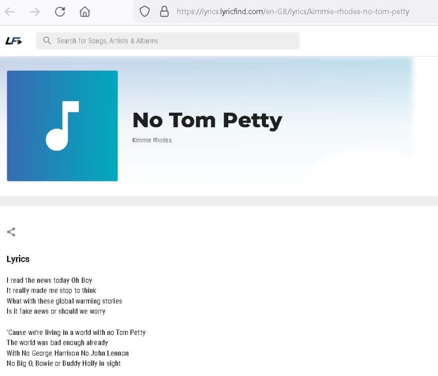 Weird, cos this is what I get. Try going to [Hidden Content] and inputing [HEADING=2]No Tom Petty Kimmie Rhodes[/HEADING]