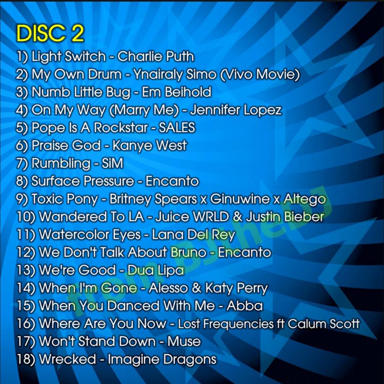 Back in March I ripped Mr Entertainer Chart Hits Update for Spring 2023 and torrented it without bothering to check the quality before posting, and it was one of my worst rips ever, but it seems to be the only one about. I've just finished re-ripping it (and re-ripping again and again on some tracks). Download it from here if you'd like it MCH23SP MCH23SP-101 - Tiesto ft Tate McRae - 1035 MCH23SP-102 - Headie One - 50s MCH23SP-103 - Louis Tomlinson - Angels Fly MCH23SP-104 - PinkPantheress - Boy's a Liar MCH23SP-105 - The Weeknd & Ariana Grande - Die For You (Remix) MCH23SP-106 - Dolly Parton - Don't Make Me Have to Come Down There MCH23SP-107 - Henry Moodie - Drunk Text MCH23SP-108 - Miley Cyrus - Flowers MCH23SP-109 - Depeche Mode - Ghosts Again MCH23SP-110 - Sam Smith w~ Koffee & Jessie Reyez - Gimme MCH23SP-111 - Maneskin ft Tom Morello - Gossip MCH23SP-112 - Niall Horan - Heaven MCH23SP-113 - Tom Grennan - Here MCH23SP-114 - Tones & I - I Made It MCH23SP-115 - Raye - Ice Cream Man MCH23SP-116 - Cian Ducrot - I'll Be Waiting MCH23SP-117 - Sam Smith - I'm Not Here to Make Friends MCH23SP-118 - Linkin Park - Lost MCH23SP-201 - The Kid Laroi - Love Again MCH23SP-202 - Taylor Swift - Maroon MCH23SP-203 - Paramore - News MCH23SP-204 - Joe Jonas & Khalid - Not Alone MCH23SP-205 - The Weeknd x Swedish House Mafia & Simon Franglen - Nothing is Lost (You Give Me Strength) MCH23SP-206 - Calum Scott - One More Try MCH23SP-207 - Ava Max - One of Us MCH23SP-208 - Coi Leray - Players MCH23SP-209 - Lewis Capaldi - Pointless MCH23SP-210 - Babyface & Coco Jones - Simple MCH23SP-211 - Pink - Trustfall MCH23SP-212 - Voices - KSI ft Oliver Tree MCH23SP-213 - Diplo ft Kodak Black & Koe Wetzel - Wasted MCH23SP-214 - Pink - When I Get There MCH23SP-215 - Jax Jones & Calum Scott - Whistle MCH23SP-216 - Sam Smith & Ed Sheeran - Who We Love MCH23SP-217 - You Are Not Alone - Tom Grennan MCH23SP-218 - Taylor Swift - You're On Your Own Kid