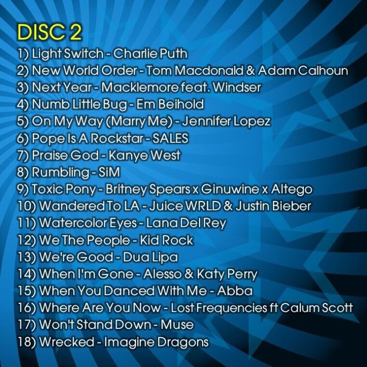 Going through MCH22SP that Davey Dee very kindly put up, and renumbering them to allign with the disc/track numbers published by Mr E, and I can see that there are 4 tracks missing that are in the Mr E listings and 4 extra tracks posted that aren't in the listing. I'm more than happy to have the 4 extras - but does anybody have those tracks that are missing ??? Missing: MCH22SP-102 - The Weeknd - Best Friends MCH22SP-202 - Tom McDonald & Adam Calhoun - New World Order MCH22SP-203 - Macklemore ft Windser - Next Year MCH22SP-212 - Kid Rock - We the People Extras: ME36571 - Encanto - We Don't Talk About Bruno ME36572 - Jessica Darrow (Encanto) - Surface Pressure ME36609 - Stephanie Beatriz, Olga Merediz, Cast of Encanto - Family Madrigal ME36654 - Ynairaly Simo (Vivo) - My Own Drum