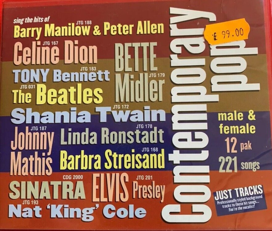 Pocket Songs, more Also not issued are JT101 to JT104; those that were shared here are actually PS0101 to PS0104 ~~ the clue is in the fact that there are vocal versions ~~ Just Tracks never have guide vocals, that's a Pocket Songs thing. Which leads me on to some other foul-ups, certainly with the songs in my collection; thos ein other collections may be correct. DIsc JT050, several tracks are title screened Pocket Songs, mainly from PS1069: 07 is PS1069-11 08 is PS1069-12 09 is PS1069-14 12 is PS1069-18 13 is PS1069-19 14 is PS1069-20 and track 17 is PS1131-17 JT059 should have 13 tracks, on my drive it's just an edited PS6011 with 26 tracks on 2 discs K and vox, all of the title screens are Pocket Songs and there wasn't second JT vocal disc. JT094 is a peculiar one ~~ all of the tracks have PS title screens, but checking 5 or the 13 titles I can't find them as PS Linda Eder tracks. JT305 is, I suppose, the exception that proves the rule. The label clearly shows that tracks 1~10 are full version (with vocal), 11~20 are male karaoke versions and 21~30 are female karaoke versions. I'm sure that there are other anomalies, I just don't have the time, or the will for that matter ~~ I must get back to bed.